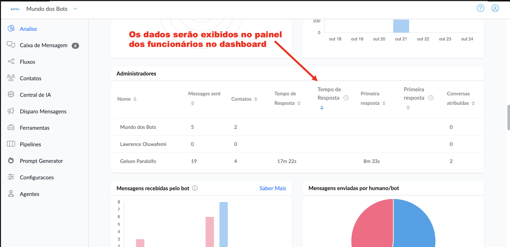 → Compare atendentes, descubra quem responde mais rápido dentro do turno e visualize o impacto das respostas fora do horário.